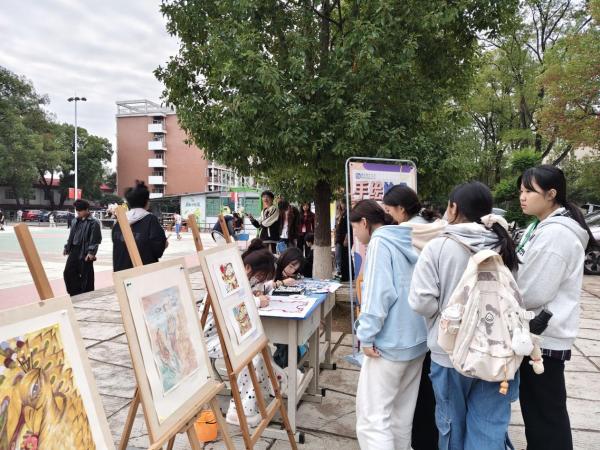 2025年11月6日,衡阳技师学院三教前篮球场上色彩斑娴,手绘协会在此开展社团文化展示活动,以画笔为媒,向师生们呈现了一场创意与美学交织的视觉盛宴。