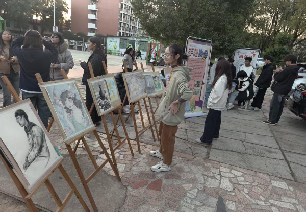 11月27日下午,学院手绘社团在三教前篮球场成功举办文化展示活动,吸引了众多师生驻足观赏、交流。